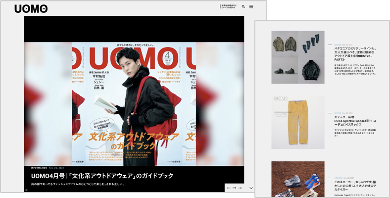 西河氏「2005年創刊のファッション雑誌『UOMO』は、当初は40代男性のスーツスタイルを中心にした媒体でしたが、2012年にカジュアルでリラックス感のあるスタイルを訴求する方向にリニューアル、同時に『WEBUOMO』がスタートしました。それ以来、ファッション、スニーカー、ビューティ、車、時計、グルメなど様々なジャンルの最新情報をお届けしています。