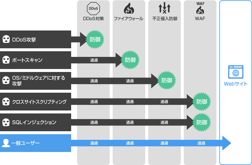 このように、Webサイトに対してさまざまな攻撃が存在するため、必要となる防御策も異なります。