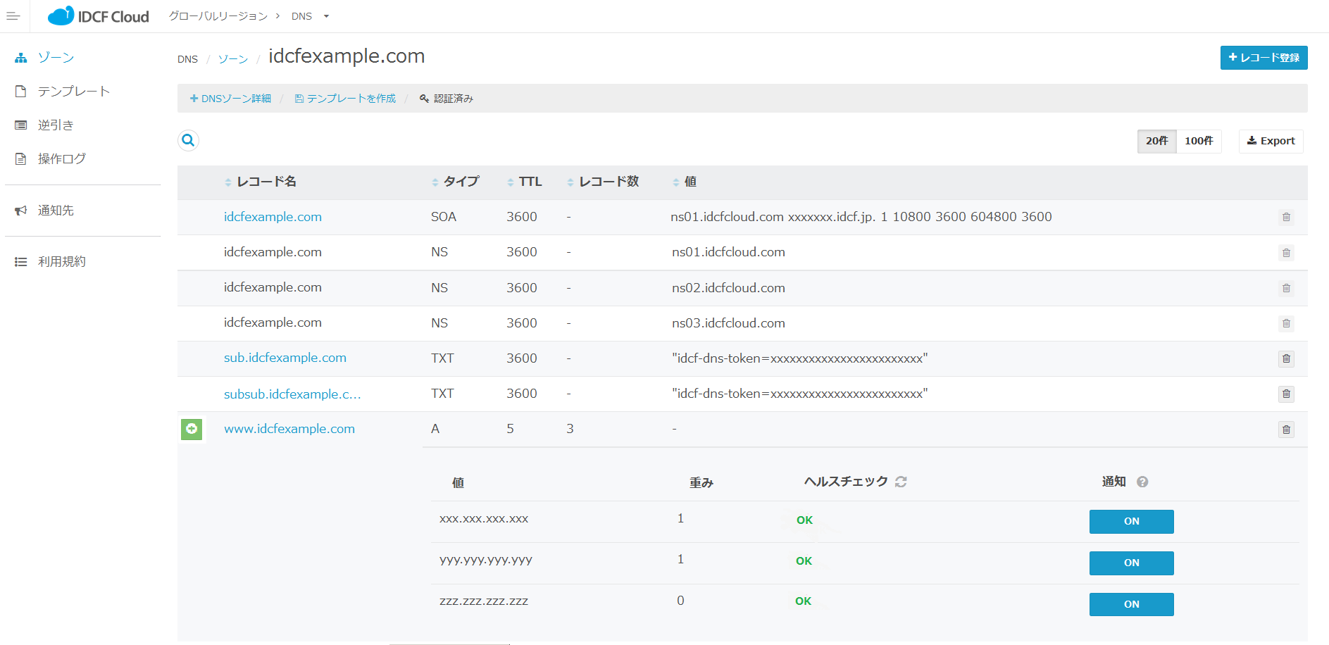 | 対応レコード | A, AAAA, ALIAS, CAA, CNAME, MX, NS, TXT, PTR, SRV, SOA | A, CNAME(分散/切替対象) |