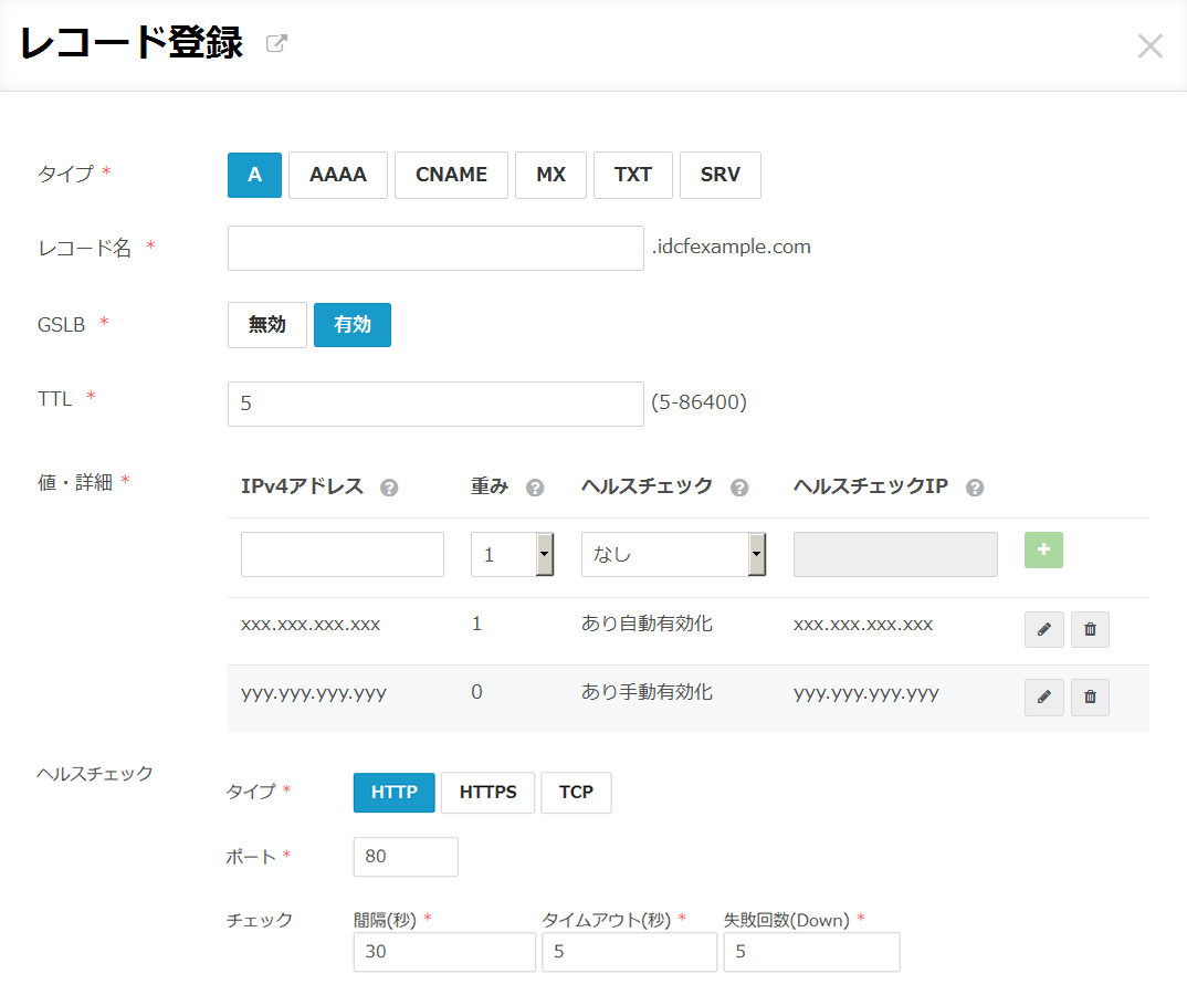 GSLBの設定方法については、DNS/GSLBのヘルプサイトをご参照ください。