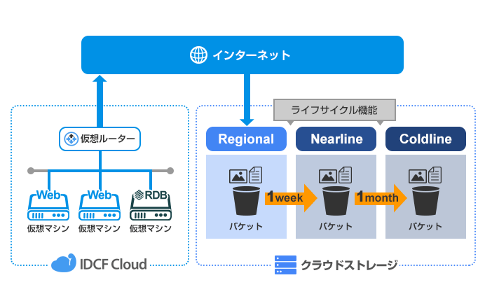 Regional・Multi-Regionalクラスに比べてコストパフォーマンスに優れたストレージクラスです。月に1回程度しかアクセスしないようなバックアップデータの保存に最適です。