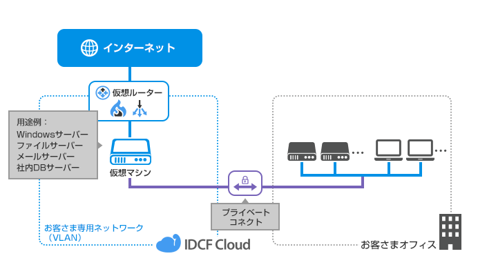 1お客さまオフィスとIDCFクラウドを閉域網経由で接続