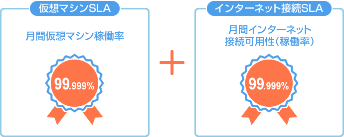 - インターネット接続の故障・障害により仮想マシンの利用ができない場合には仮想マシンSLAは適用されません。(インターネット接続SLAのみが適用されます。)