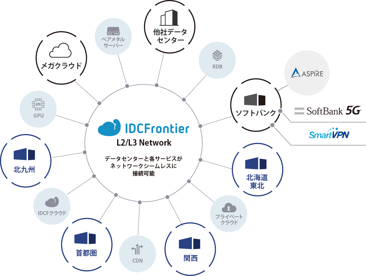 ご利用の用途に合わせ、主要なクラウド事業者や他事業者のデータセンターとの閉域接続、国内の主要なインターネットエクスチェンジ(IX)への接続やオンプレミスとの相互接続も可能で、多くのトラフィック配信を必要とするシステムの運用や、オンプレミスとのハイブリッドやマルチクラウドなどの構成も容易です。