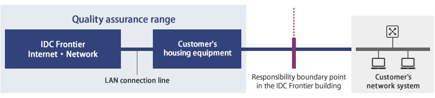 The uptime for this service is defined as the hours that the equipment which houses the customer network is available for connection to IDCF's Data Center backbone network. The SLA guarantees a defined percentage of the uptime, or the uptime rate, per month.