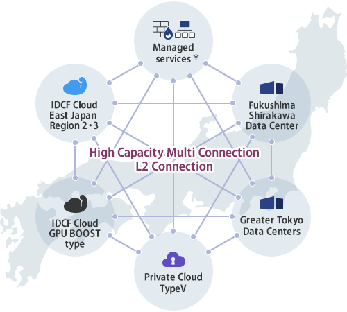 | Services connectable | Cloud | ・IDCF Cloud EAST-Region 1/2/3, IDCF Cloud WEST-Region ・Private Cloud TypeV |