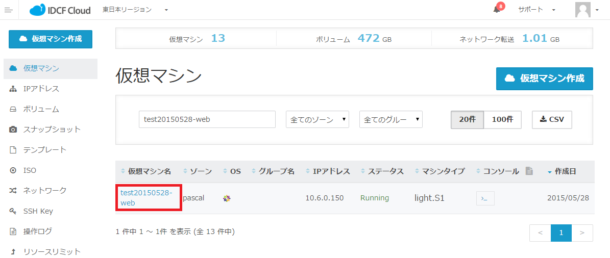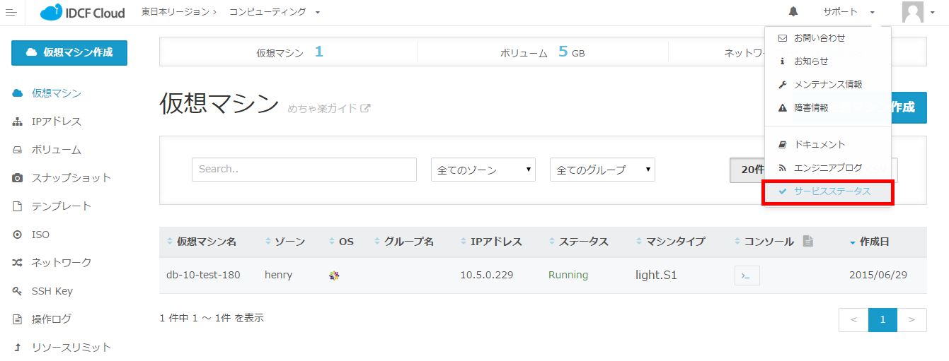 IDCFクラウドコンソールの画面表示のレスポンスタイム