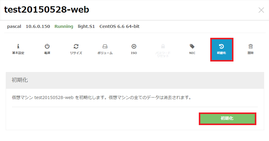 詳細はよくあるご質問をご覧ください。仮想マシンの初期化機能では何ができますか?