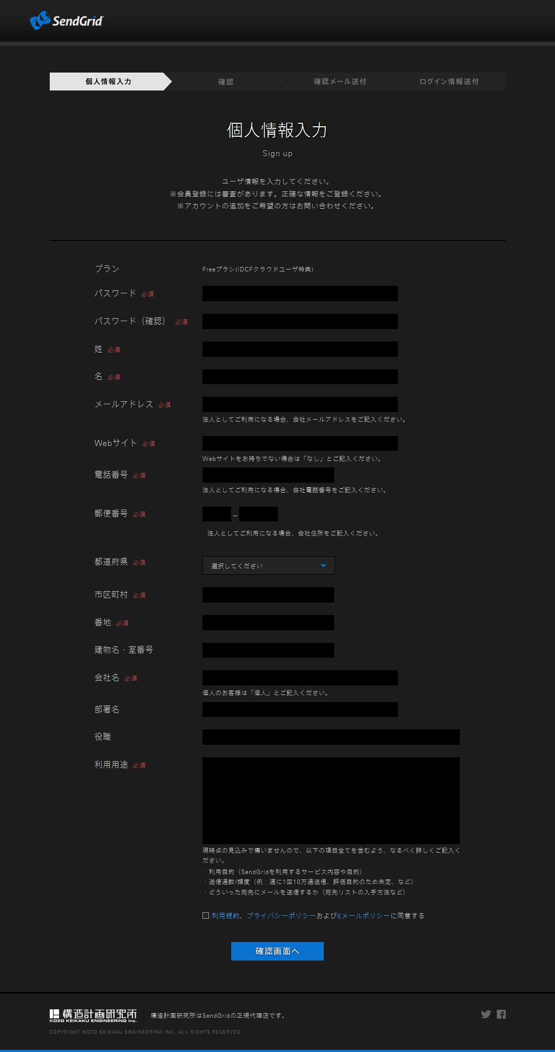 3.ユーザー情報を入力して注意事項を確認の上、確認画面をクリックします。