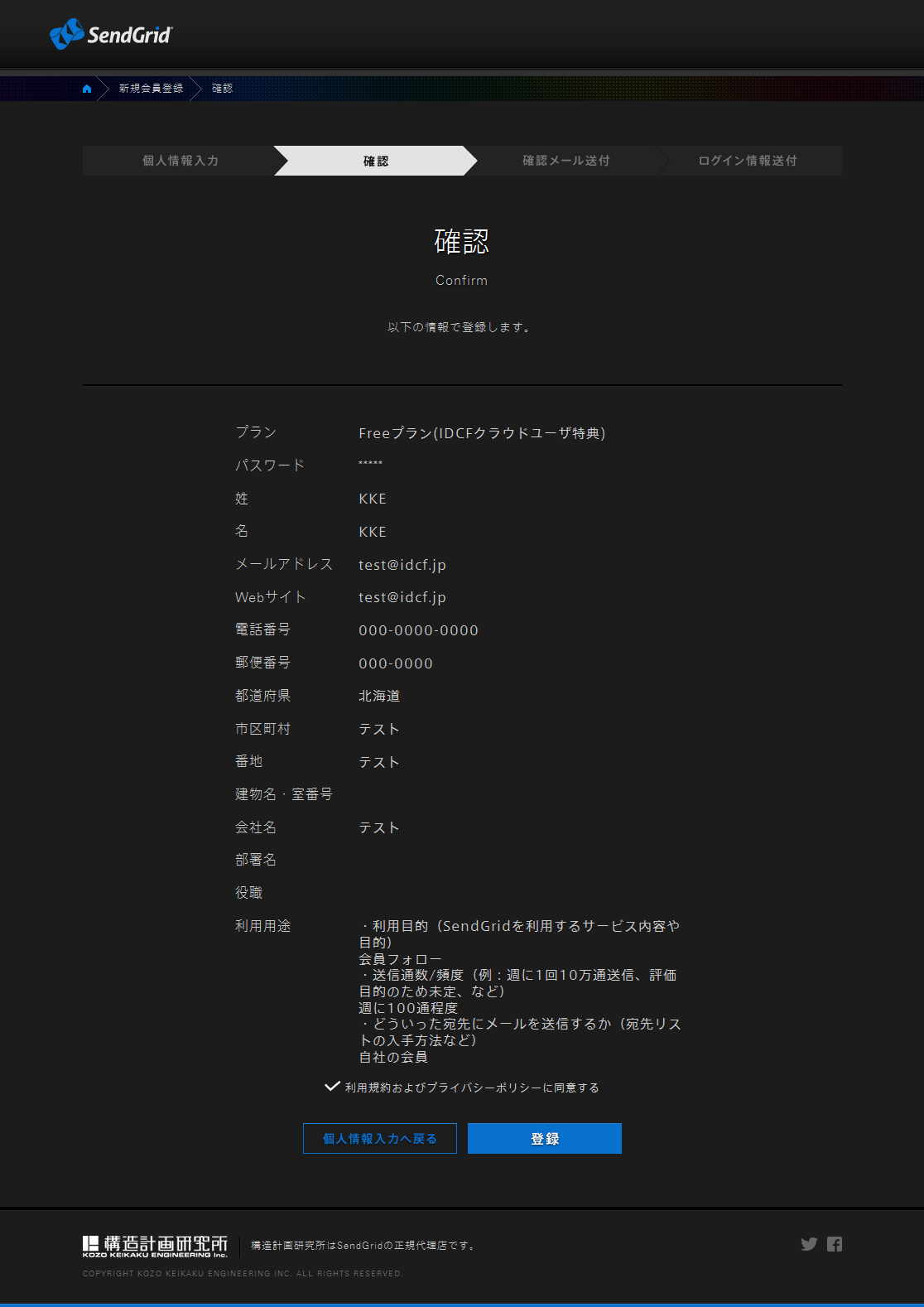 4.確認画面で入力内容を確認の上、登録をクリックして登録完了です。