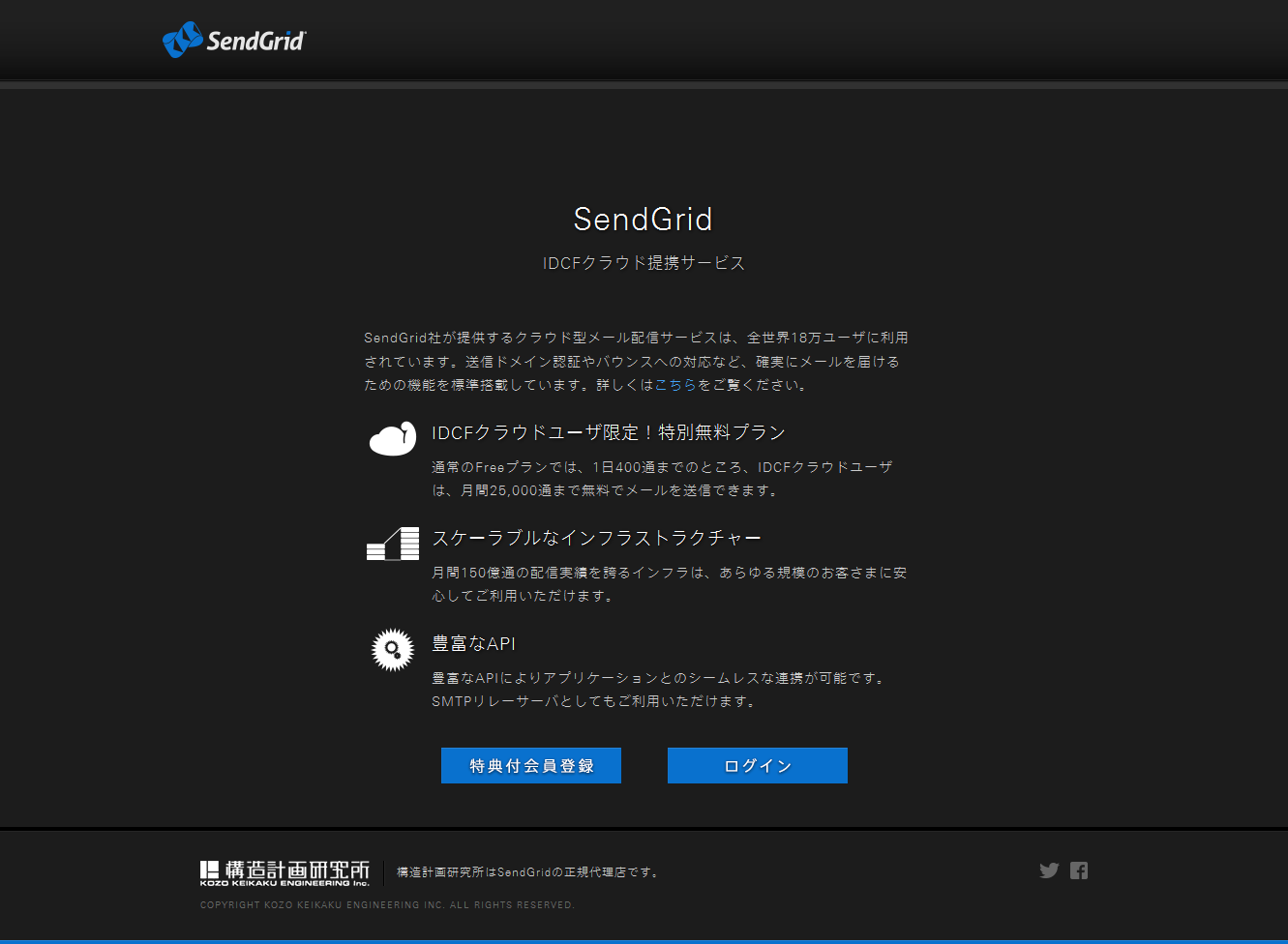 メール配信が月間25,000通まで無料となるクラウドメール配信サービス「SendGrid」を利用する事で、サービスのインフラ構築から運営に欠かせないメール配信までがトータルで揃い、APIによる自動化と低コストで高信頼のメール配信を行うサービス運用が可能となります。