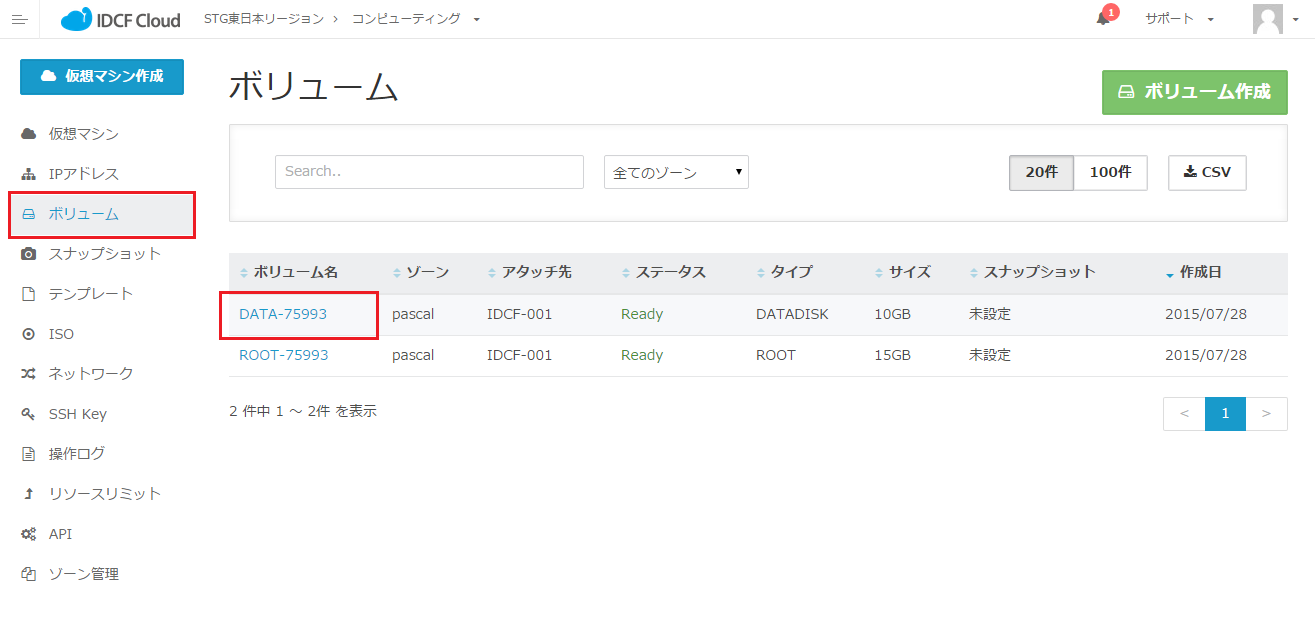 クラウドコンソールの「ボリューム」から、ボリューム名を選択してください。