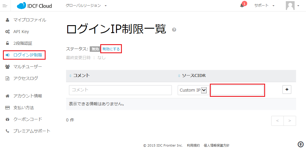 「My IP」と、IPアドレスを指定できる「Coustom IP」をご利用いただけます。
