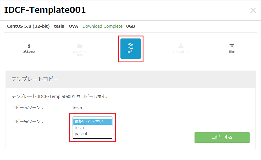 別ゾーンや、別のアカウントへのテンプレートインポートやローカルでの保存にご利用ください。