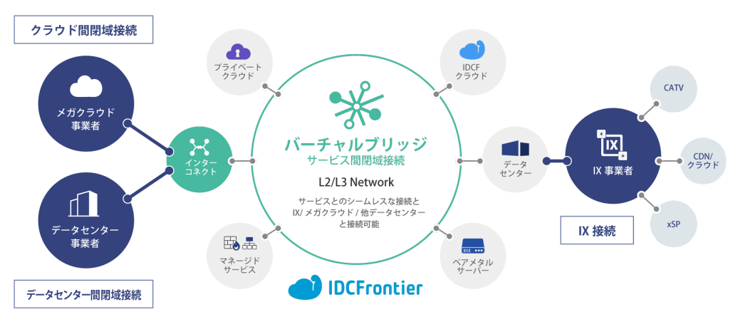2024年1月より、ネットワークサービス「バーチャルブリッジ」の接続先として、IX事業者などの他事業者接続が追加されました。