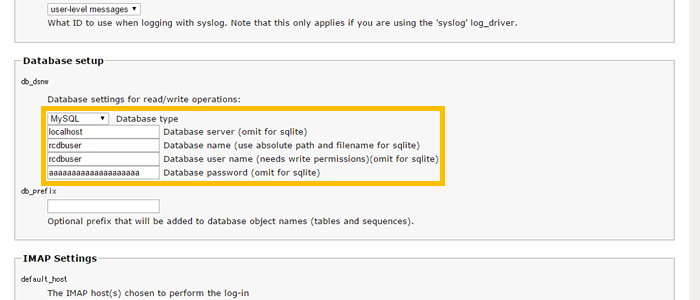 まずは「Database setup」のセクションで、データベースに関連する項目を設定します。