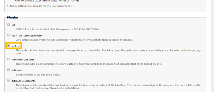 「Plugins」のセクションで、「archive」の項目にチェックを入れます。