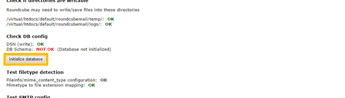 「Check DB Config」の項目の「Initialize database」ボタンをクリックします。