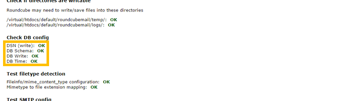 初期化が正常に行われると、「DB Schema」などの項目に「OK」が表示されます。