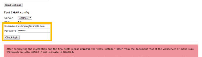 メール受信時に必要な情報を入力し、「Check login」ボタンをクリックします。