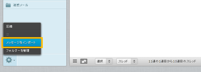 画面左側下部の歯車ボタンから「メッセージをインポート」をクリックします。