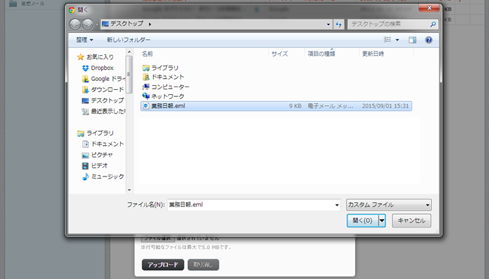 一般的なメールソフトがサポートする電子メールの「Eml形式(拡張子が.eml)」で保存されたメールを、Roundcubeに取り込んでご利用いただけます。