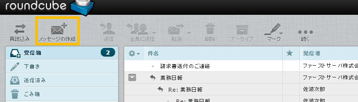 Roundcubeにログインし、「電子メール」画面にアクセスします。