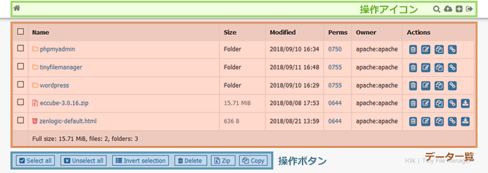 ※ 2018年9月現在で提供されている「Tiny File Manager」での情報となります。