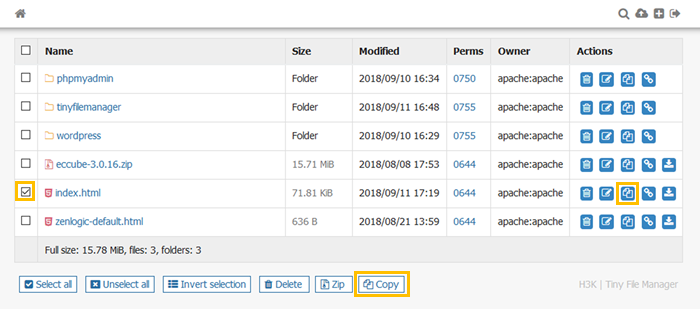 ※ 2018年9月現在で提供されている「Tiny File Manager」での情報となります。