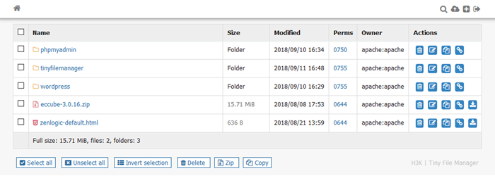 ※ 2018年9月現在で提供されている「Tiny File Manager」での情報となります。