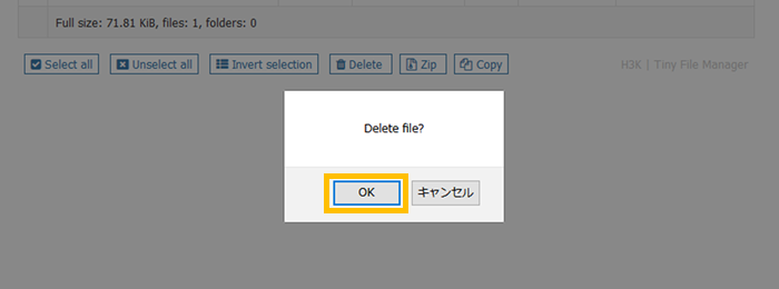 Tiny File Managerで削除したデータは、復旧できません。