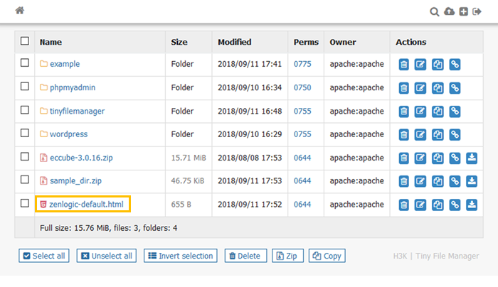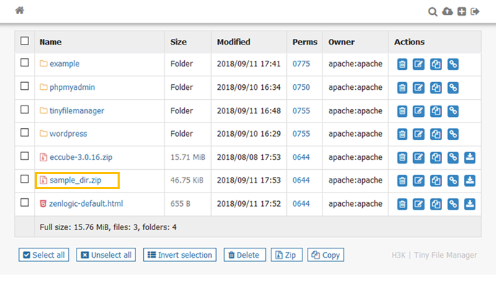 ※ 2018年9月現在で提供されている「Tiny File Manager」での情報となります。