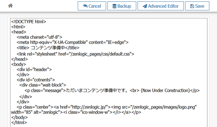 | Advanced Edit | HTML等のタグが装飾された状態で表示されます。 |