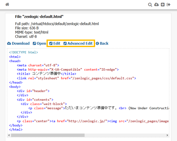 ファイルの内容が表示されたら、「Edit」「Advanced Edit」のいずれかをクリックします。