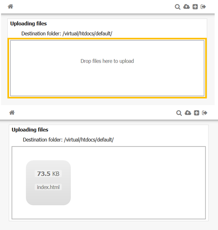アップロードしたい場所まで移動したら、アップロードアイコンをクリックします。