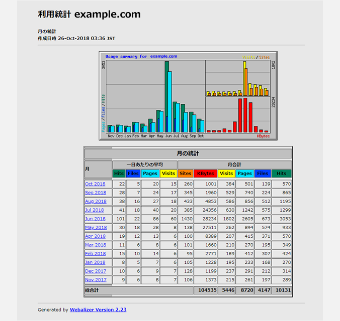 Webalizerのトップ画面が表示されたら、アクセス成功です。