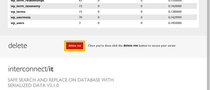 このツールは、URLに直接アクセスすると、データベースのパスワードなどの情報がそのまま表示されていますので、悪用を防止するため、本ツール自体を削除します。