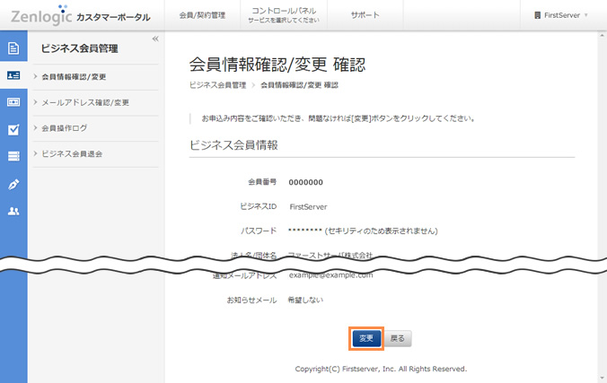 確認画面が表示されますので、設定内容に問題がなければ「変更」ボタンをクリックします。