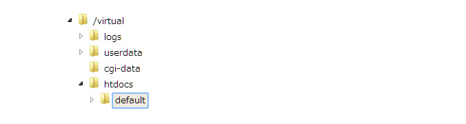 データはサーバーの「/virtual/htdocs/default」ディレクトリにアップします。