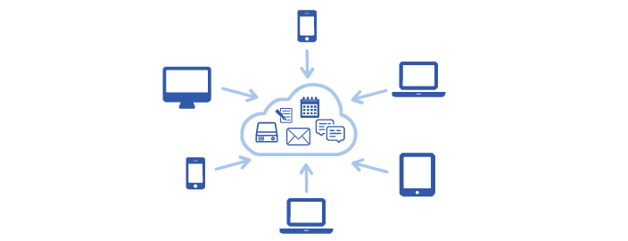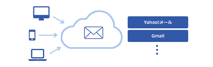 アドレス帳やメールデータなどはすべてインターネット上に保存されており、ユーザーはパソコンやスマートフォンからインターネットに接続してメールの確認などを行います。