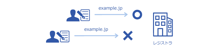 ドメイン名の登録は、レジストラとよばれるドメイン名の登録申請を受け付ける組織で行います。