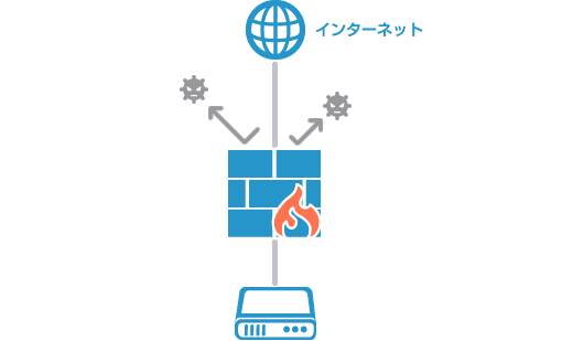 ファイアウォールは、企業内や家庭内のネットワークにおいて、インターネットとの境界に設置することで、インターネット上の不正侵入など無数の攻撃から防御してくれます。