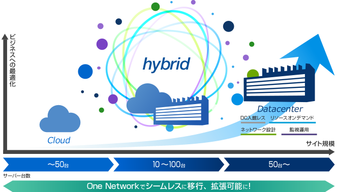 パブリッククラウドとプライベートクラウドのほか、ハウジングや各社の提供するクラウドサービスを自由に組み合わせた運用形態のこと。