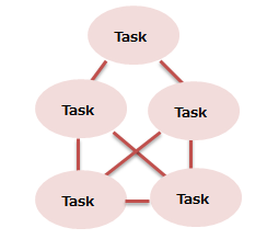 しかし、計算の仕組はHiveと異なります。Hiveは実行されると数段のMapReduceジョブ(コンピュータに与える仕事の単位)へと変換されますが、Prestoは個々のタスク(ジョブが細分化された仕事)が並列で動いています。