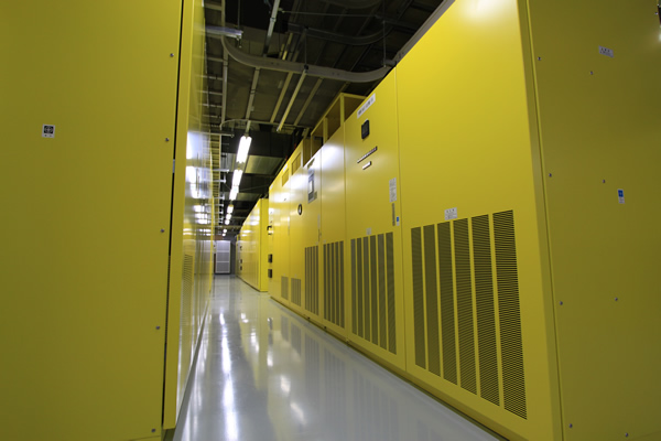 IDCフロンティアのすべてのデータセンターでUPSやGTGを設置しており、万一の商用電力停電時にも電力供給が可能となっています。